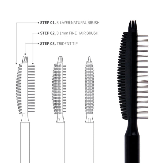 0.1mmの極細毛が繊細にまつげを梳かして仕上げる。